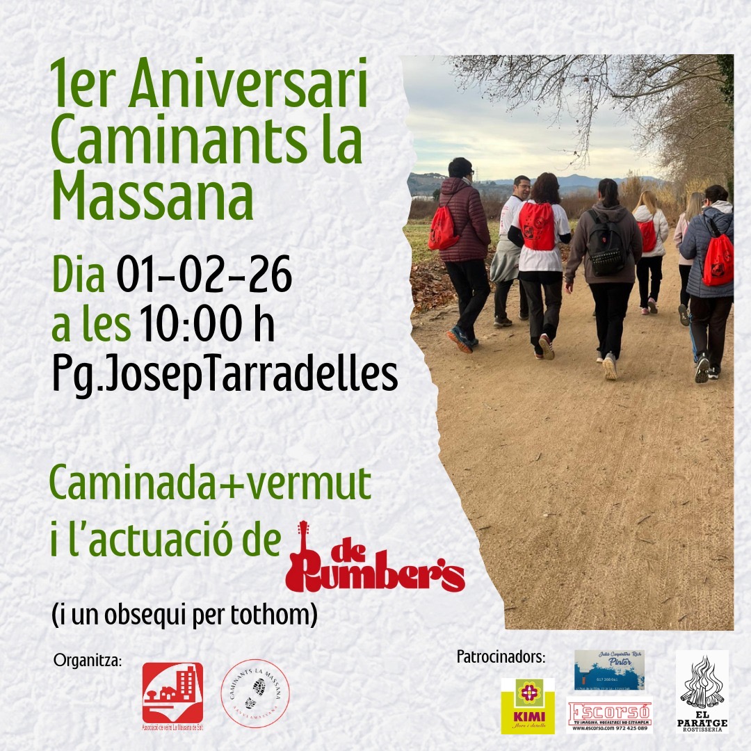 Ja fa un any que Caminants la Massana posa gent en marxa, suma somriures i omple els camins de bon ambient. I això s’ha de celebrar com toca: amb una caminada conjunta, un vermut per compartir i una actuació musical per arrodonir el matí.